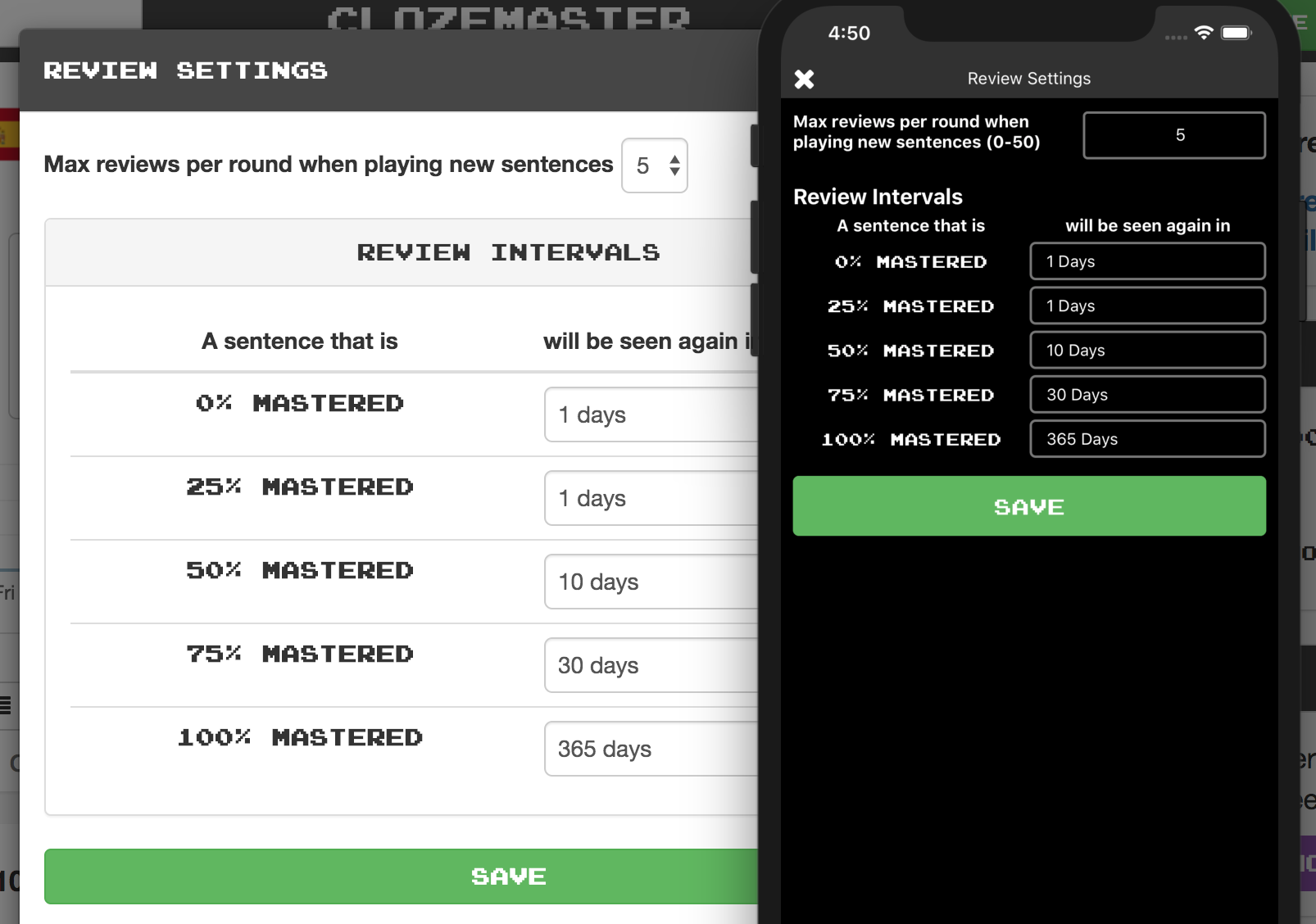 Take control of your learning. Customize the number of sentences per round and set review intervals to fit how you learn best.