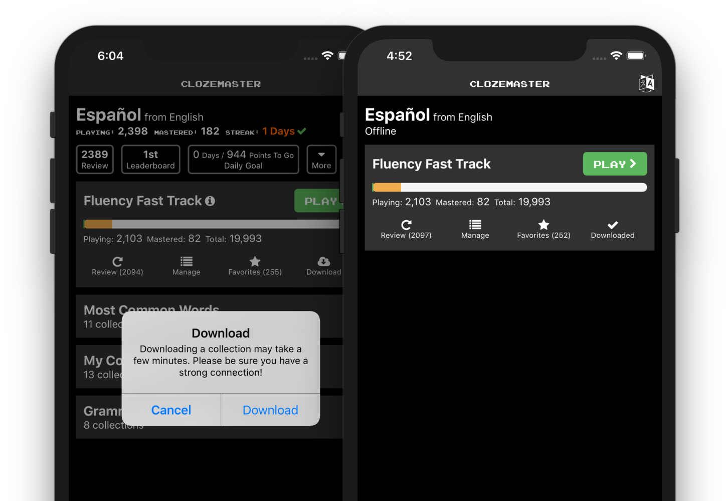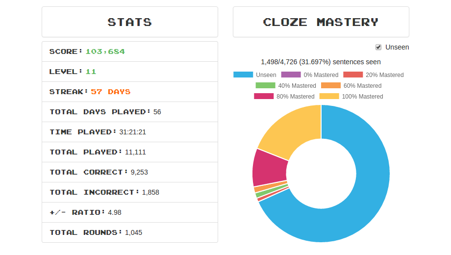 That feeling when it clicks, when you can watch TV and movies in another language with ease, land in a foreign country and understand every word you see and hear, impress your date, and speak confidently with native speakers - all of it requires a strong base of vocabulary. Clozemaster Pro can help you get there faster.